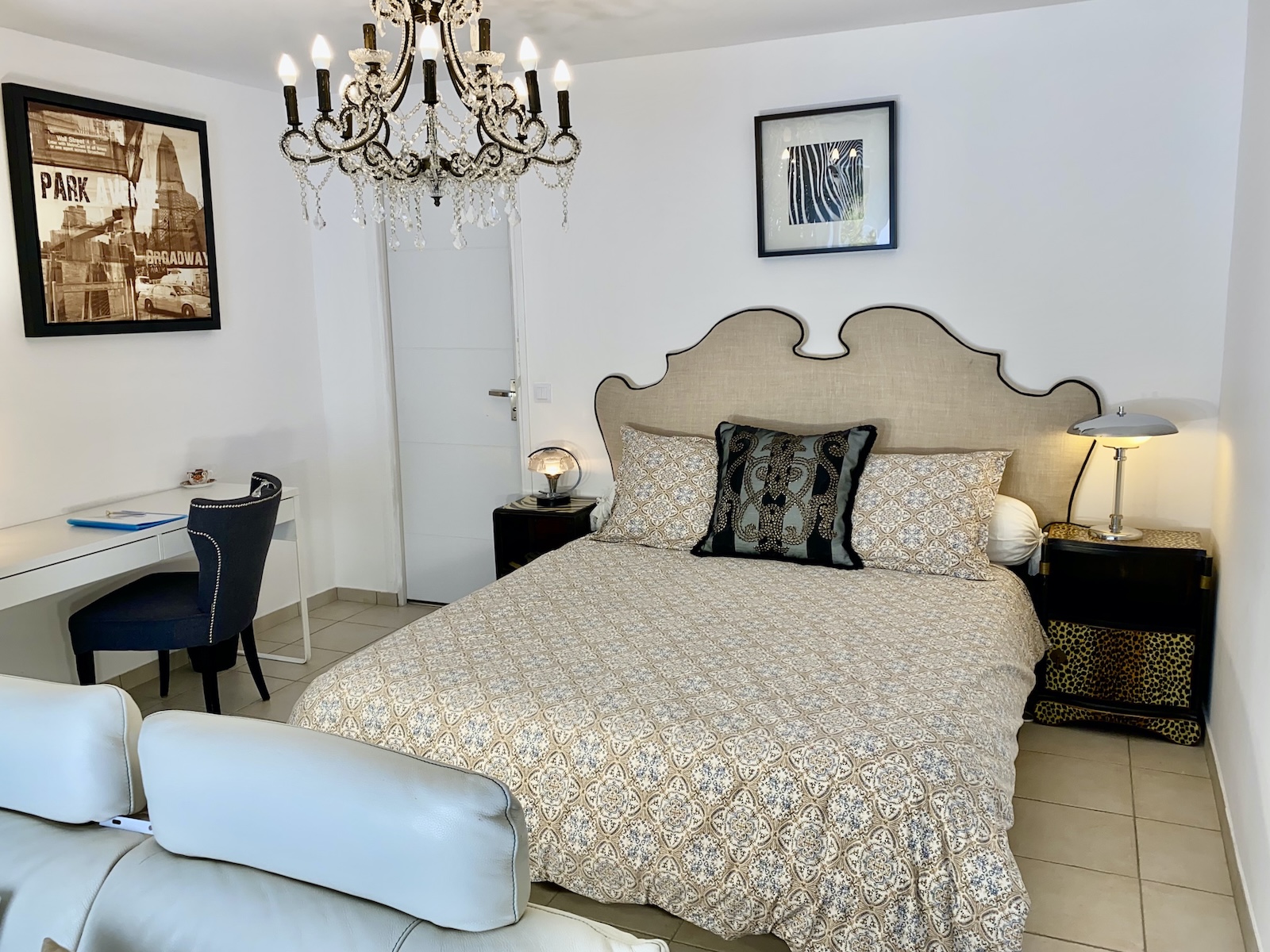 Spacieuse et élégante, la chambre Riviera offre une atmosphère apaisante côté jardin, propice au repos et à la détente.